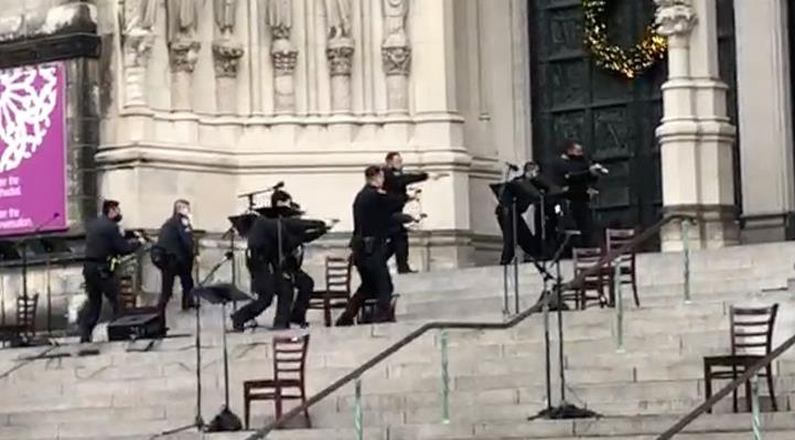美國紐約市曼哈頓一間教堂外發生槍擊案,警員開槍打中一名疑犯,他送院後證實死亡。