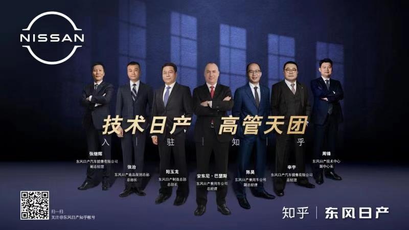 為了從專業領域解答知乎網友提出的以上種種問題,讓消費者了解更多「技術日產」的黑科技,11月30日,東風日產乘用車公司總經理安東尼·巴瑟斯、東風日產乘用車公司副總經理陳昊、東風日產制造總部總部長陽玉龍、東風日產汽車銷售有限公司總經理辛宇、東風日產商品規劃總部總部長張治、東風日產技術中心副中心長周鋒、東風日產汽車銷售有限公司副總經理張繼輝,7位高管組成「技術日產高管天團」,正式入駐知乎平台,將從品牌、技術、營銷、制造等多維度領域解析東風日產的品牌魅力。