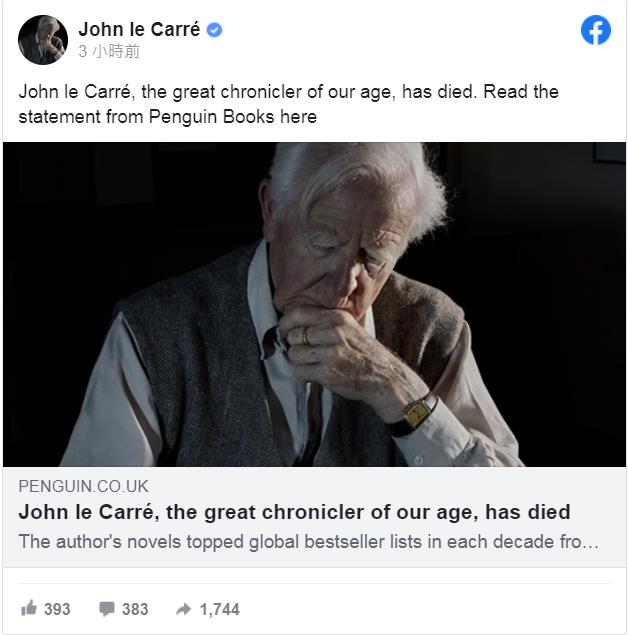 20世紀諜報小說大師約翰·勒卡雷(John le Carre)驚傳過世,享壽89歲。他生前以自身二戰間諜經驗寫就的小說《鍋匠,裁縫,士兵,間諜》(Tinker Tailor Soldier Spy)聞名,該著被翻拍成英文同名電影《諜影行動》。