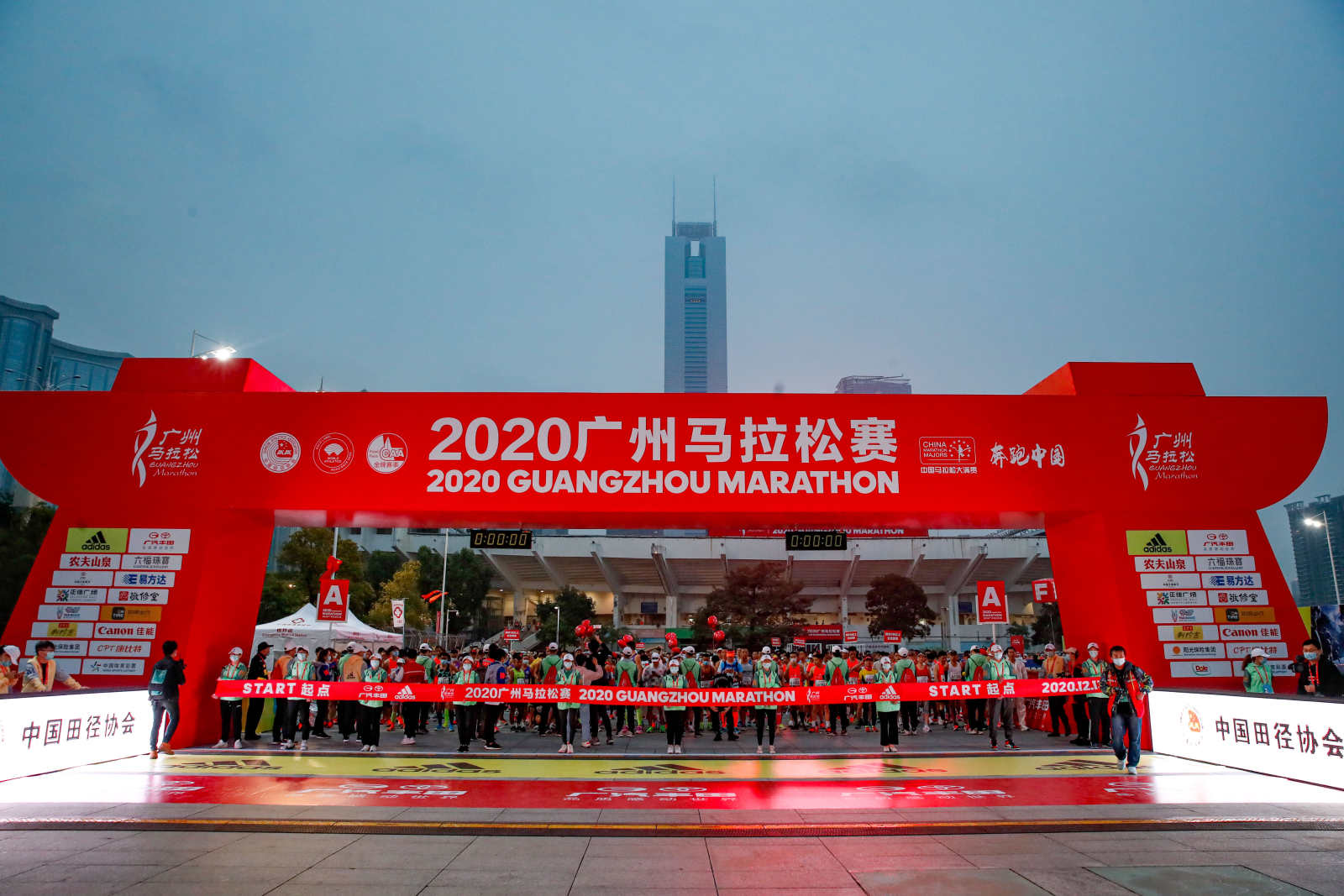 12月13日上午7時30分,「奔跑中國」系列賽事、世界田聯、中國田協「雙金」賽事——2020廣州馬拉松賽在廣州天河體育中心鳴槍起跑,2萬名跑者參加全程馬拉松賽事,成就疫情以來世界最大規模全馬賽事。世界田聯路跑事務總監阿萊西奧盛讚廣州馬拉松「向世界展示如何在疫情期間恰當防疫措施以保證大規模的馬拉松賽事安全進行,堪稱世界馬拉松賽事的榜樣」。