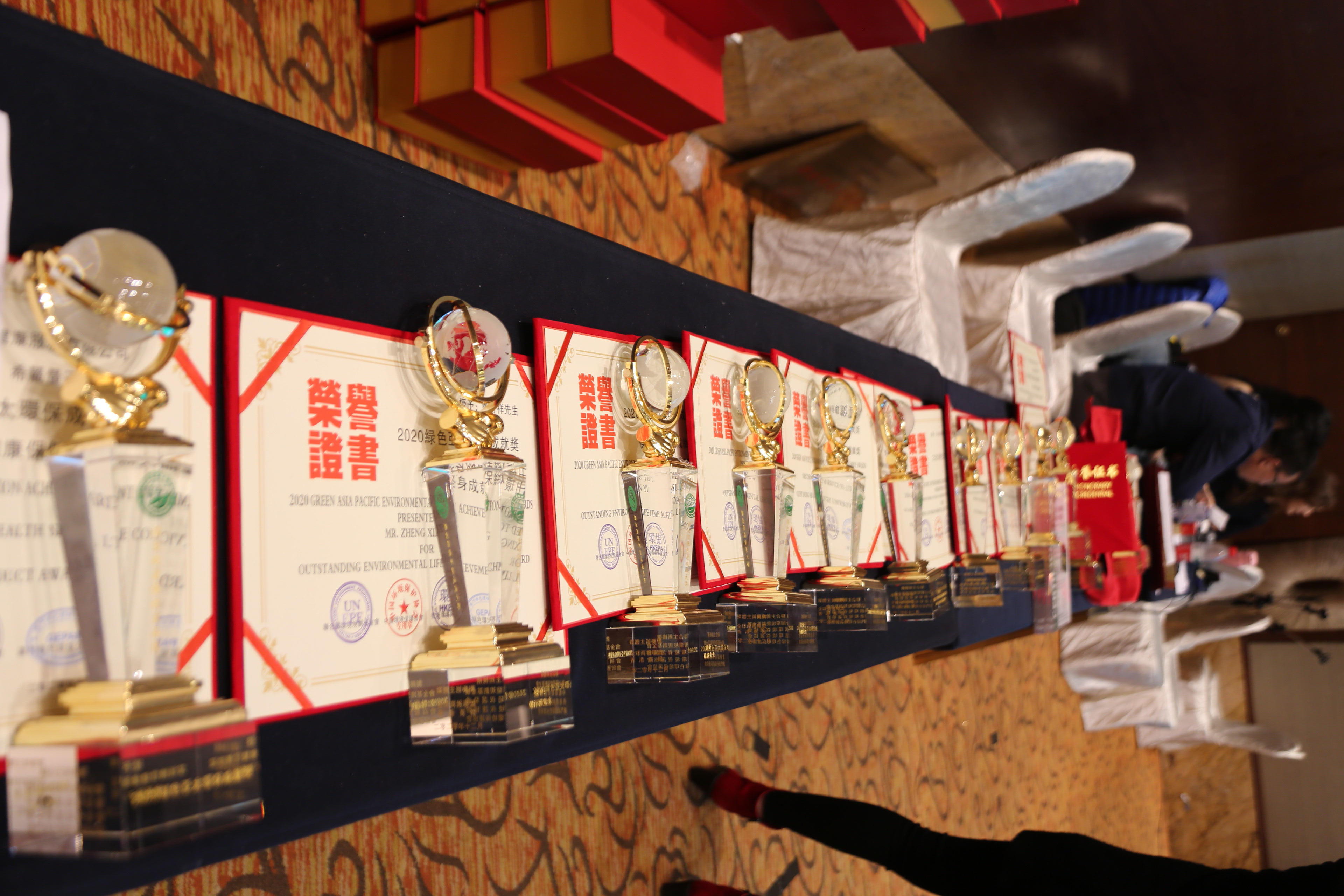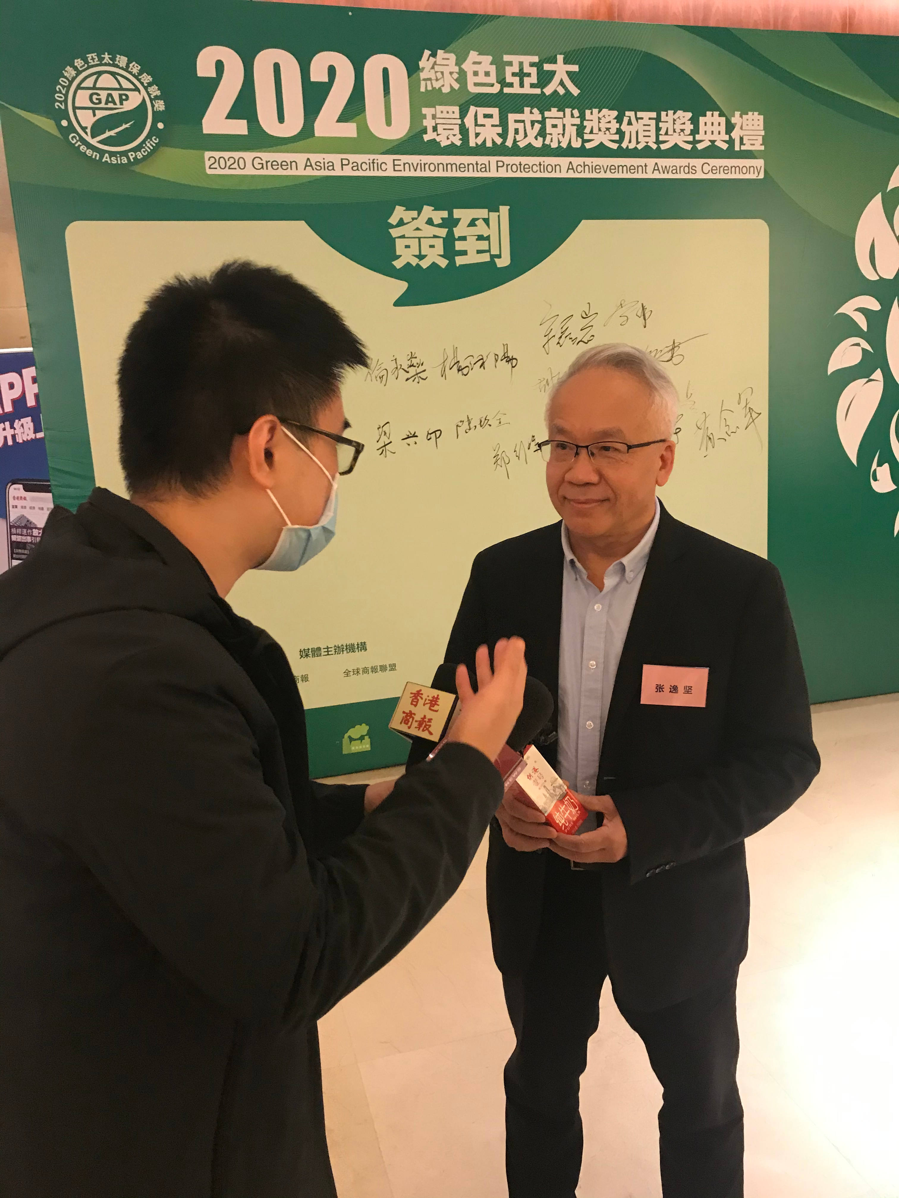「2020綠色亞太環保成就獎」之「傑出環保終身成就獎」分別授予孫毅先生、鄭行祥先生;「傑出環保領軍人物獎」授予白鵬先生。