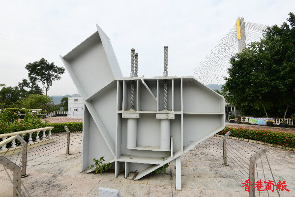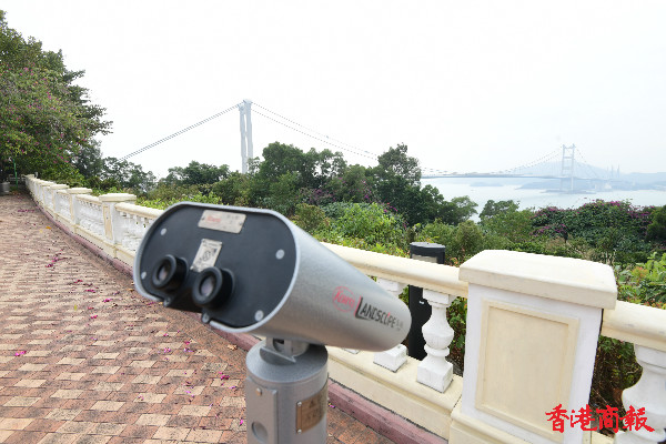 瞭望台亦設有青馬大橋及汀九橋的戶外組件,讓市民可了解當年裝嶔大橋的壯觀建築技術。在青嶼幹線訪客中心內,亦有介紹青馬大橋及青嶼幹線的建築資料。而青馬大橋的主跨長達一千三百七十七米,是往來赤鱲角香港國際機場的公路及機場鐵路重要部分。懸吊橋樑的主纜由約二萬七千噸鋼絲織成,鋼絲的總長度更可足以圍繞全球四次,青馬大橋被喻為世界上最長的道路鐵路兩用吊橋。(崔俊良 攝)