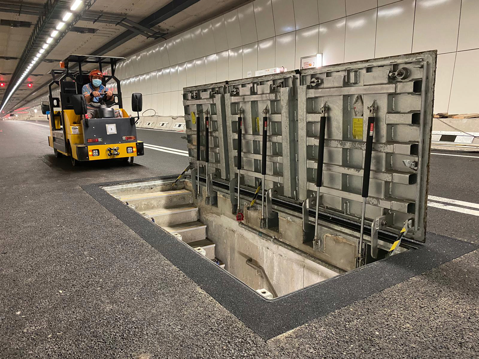屯門赤鱲角隧道內部及公用設施走廊入口。