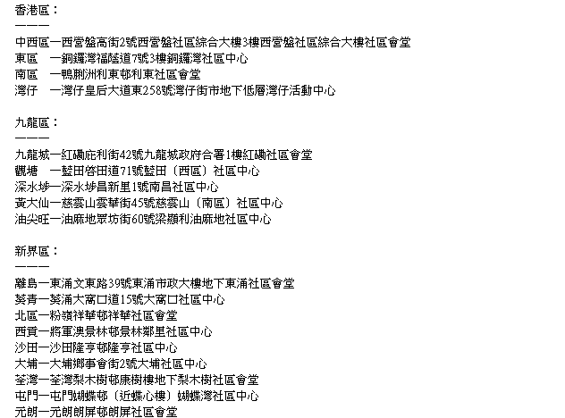 民政事務總署於今日(20日)開放的18間臨時避寒中心,4間位於港島、5間位於九龍,其餘9間是位於新界區。(中通社資料圖片)