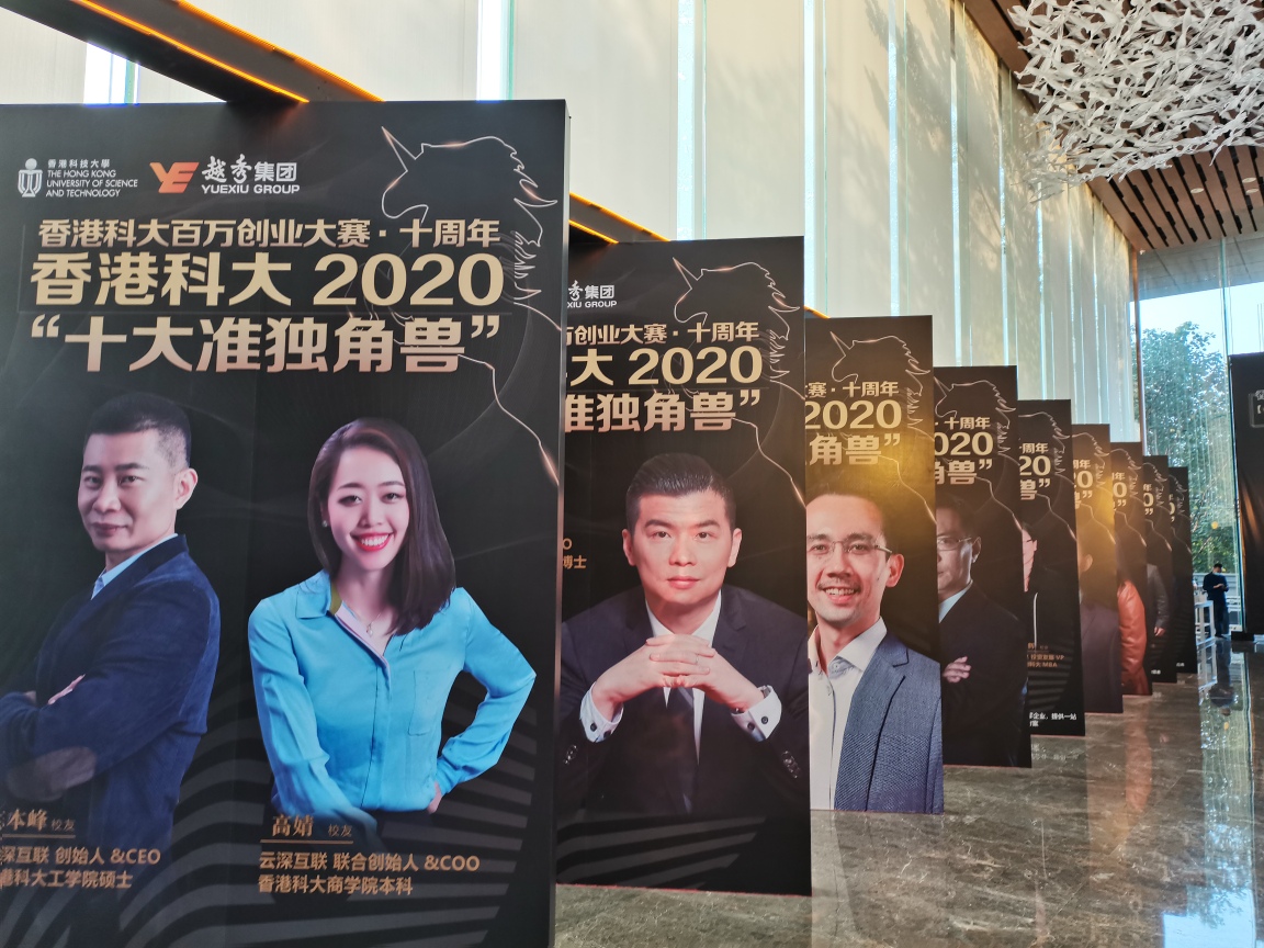 香港科大2020「十大准獨角獸」頒獎慶典也在當日晚上舉行,晶科電子、雲深互聯、極目生物、AutoX、慧·科技、開思、普渡科技、李群自動化、華科創智、雲洲智能摘得「十大准獨角獸」殊榮。這十家准獨角獸科創企業的公司估值在10億-100億元人民幣之間,均是香港科大師生創業項目或曾經參與香港科大百萬獎金創業大賽的創業項目。同時,均在某一個細分科創領域具有獨特的領先優勢。
