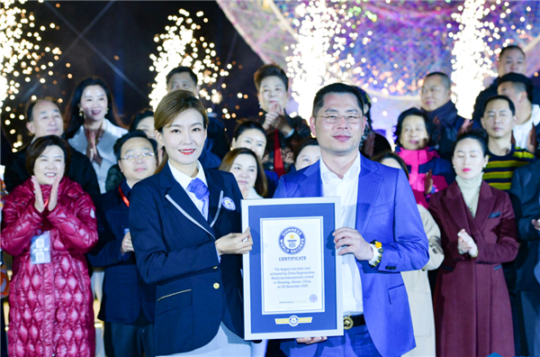 據介紹,本次盛典歷時五天,由中國再生醫學主辦,中國長三角婚慶協會、上海婚慶行業協會、海南省婚慶旅遊行業協會、江蘇省婚慶行業協會、中國再生醫學「最大玫瑰花熊」世界紀錄主辦方聯合承辦。活動現場,還布置了八米高七噸重的萬朵玫瑰花拼成的「最大玫瑰花熊」,為新人祝賀。當晚七點,世界吉尼斯紀錄認證官侯穎小姐也現場完成了「最大玫瑰花熊」的吉尼斯世界紀錄認證。