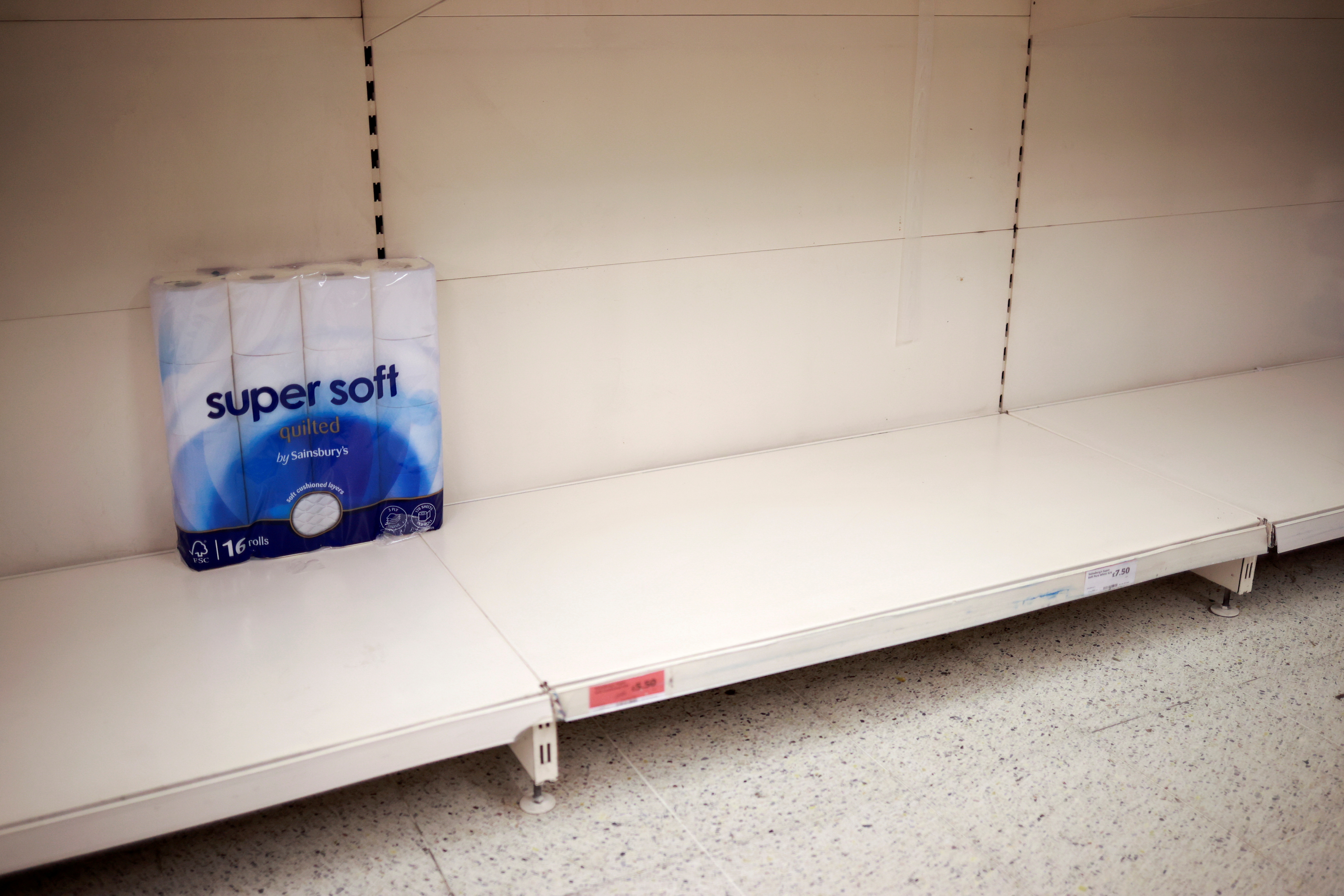 12月21日,英國倫敦一間商店內的衛生紙貨架。路透社