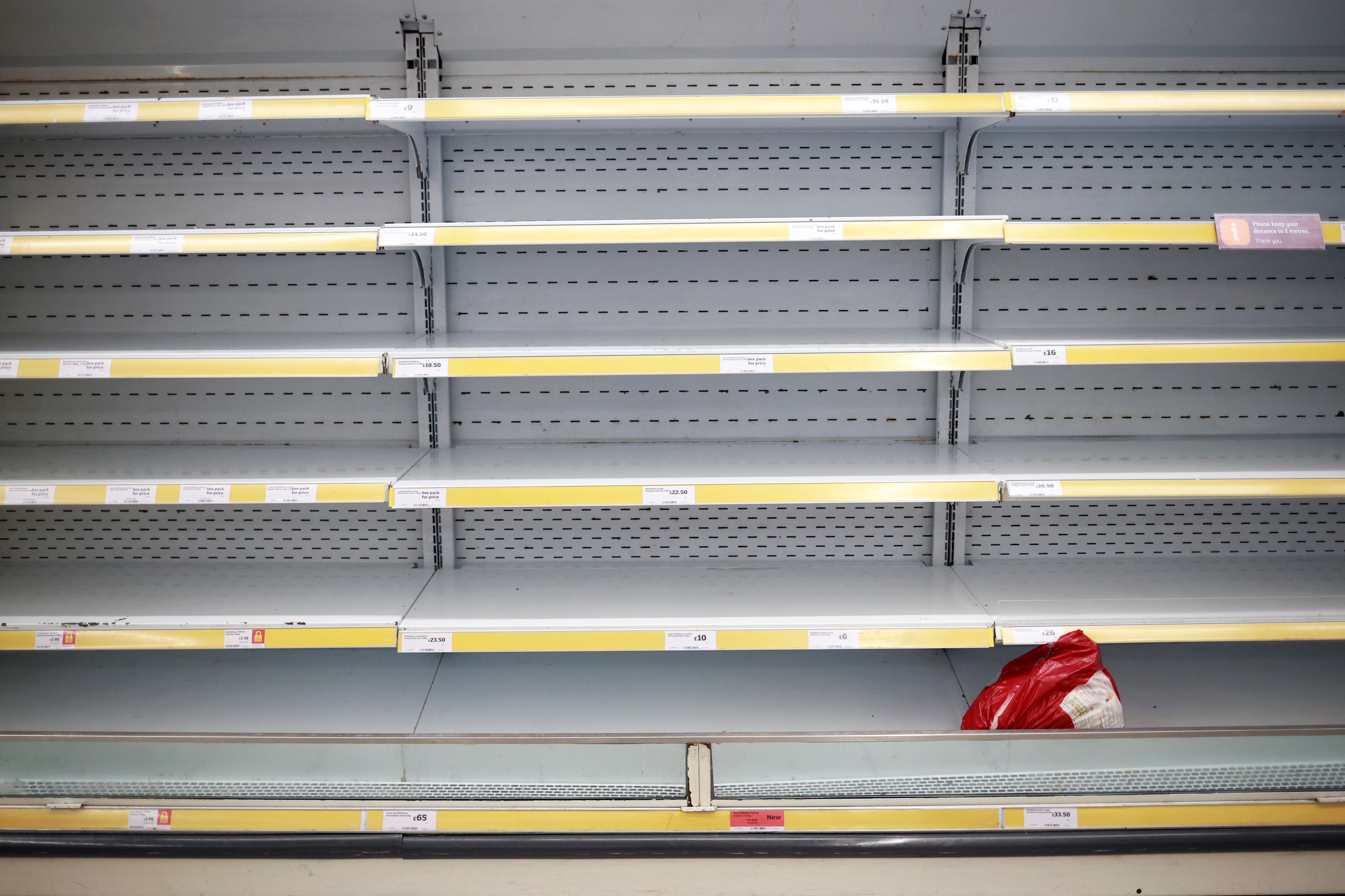 12月21日,英國倫敦商店內的空貨架。路透社