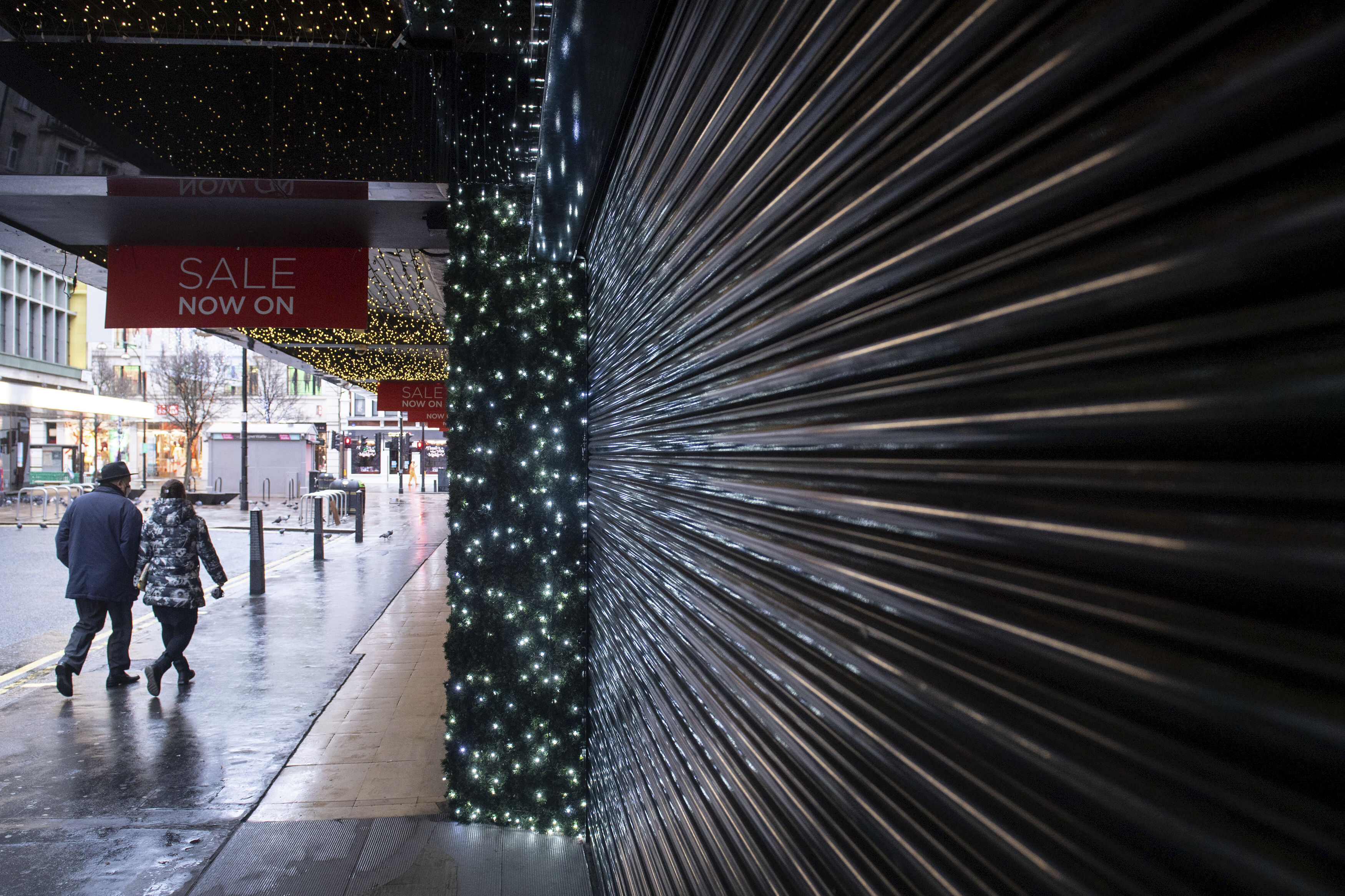 12月21日,行人從英國倫敦牛津街關閉的店鋪前經過。美聯社