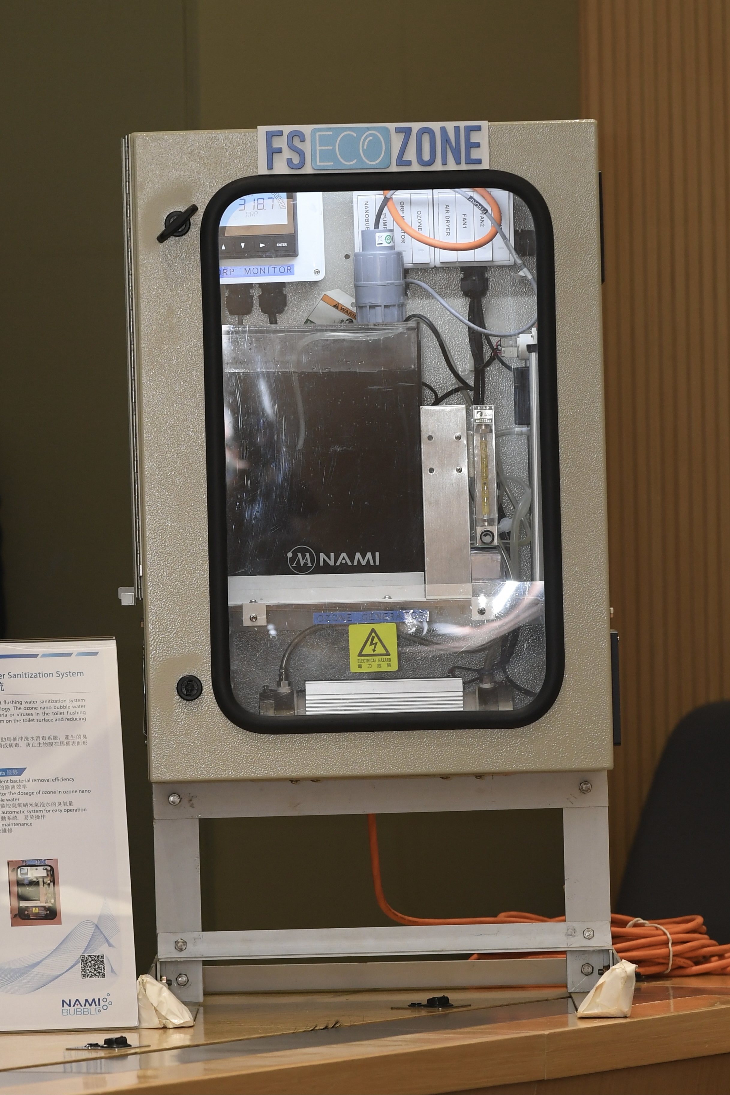 由納米及先進材料研發院研發的「沖廁水消毒系統」。該項發明透過納米氣泡減少沖廁水中細菌和病毒。