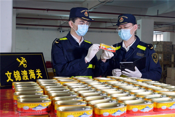 深圳海關隸屬文錦渡海關首度查獲出口侵權鯪魚罐頭