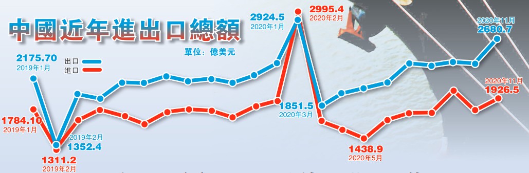 對於中國外貿來說,2020年是一個非同尋常的年份。由於新冠肺炎疫情的影響,中國外貿在年初遭受巨大打擊。一路走來,到今年11月,1-11月總體外貿增速終於轉正。這既是中國有效抗擊疫情的結果,也是中國自身經濟強大韌性的體現。2020年轉瞬即逝,未來中國外貿的前景如何?接受本報記者採訪的專家認為,中國的制度優勢使疫情很快得到控制,復工復產有序展開,外貿得以快速恢復。展望2021年,全球疫情有望得到控制,全球經濟可能全面走向復蘇。中國外貿面臨的競爭會比今年更多,但由於全球經濟整體向好,也給中國提供了更多機會。中國要做的,是讓企業更好地適應市場需求,練好「內功」,更好地迎接未來的機遇與挑戰。