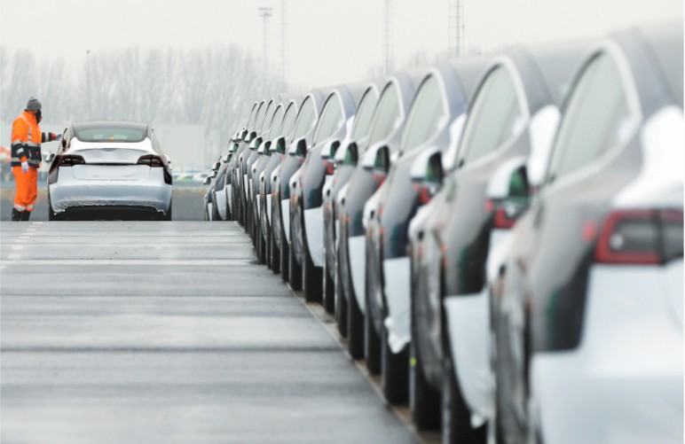 首批出口歐洲的中國製造特斯拉汽車運抵比利時。新華社
