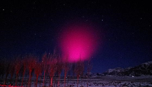 據中新網報道,12月23日晚,青海省海西州德令哈市上空出現紅色「奇光」,攝影愛好者也用相機紀錄了這一不明現象。