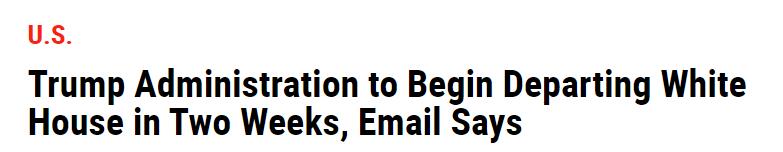 據美國《新聞周刊》23日報道,一名哥倫比亞廣播公司新聞記者23日上午發文稱,白宮工作人員22日晚收到了總統行政辦公室發來的一封電子郵件,指示他們從明年1月4日起開始清理自己的辦公桌,打包辦公用品。該郵件中透露,特朗普政府將在兩周後開始撤離白宮,儘管目前其競選團隊仍在努力推翻關鍵州的選舉結果。
