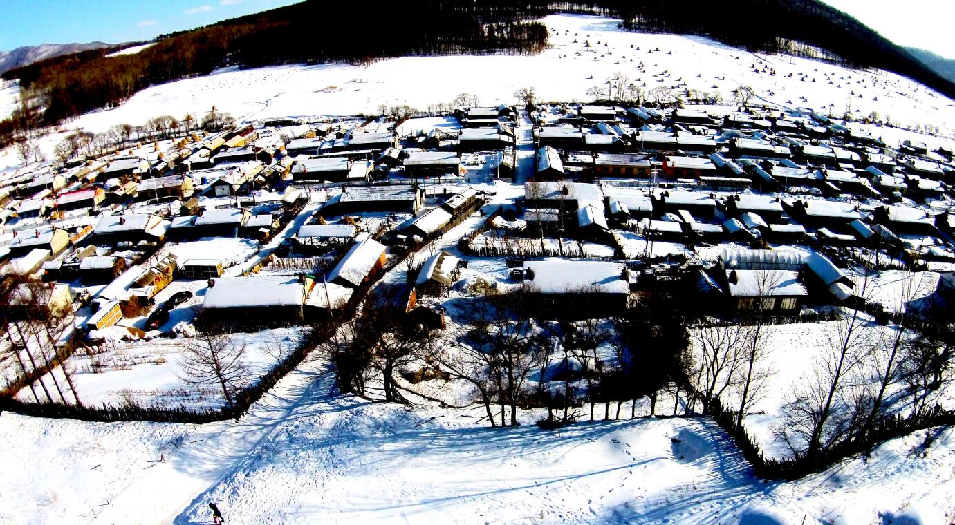 來到吉林省舒蘭市二合雪鄉,站在村口,抬頭望去,「吉林雪鄉」四個鮮紅的大字在冰雪的映襯下熠熠生輝。走進村里,村路兩側的冰掛讓人們立刻置身於一個冰雪世界。二合雪鄉隨山坡走勢而建,高低不同,錯落別致。高高掛起的紅燈籠,像是歡迎遊客的禮花,在雪鄉里分外奪目。登山觀景台,依村而建的滑雪場、皇家獵苑和整個村貌一覽無餘。雪鄉的美無法形容,只有你身處其中,才能感受到那種白茫茫的世界有多麼吸引你。雪鄉處於山谷里,東南北三面被山峰包圍著,每天早晨山脊被陽光映照成金黃色,閃閃發光,非常漂亮。