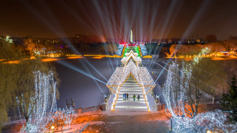 今冬,長春世界雕塑園冰雪活動全面升級為長春世界雕塑園冰雪藝苑,按照「一心、一線、一環」的總體規劃思路,為廣大遊客打造融互動性、體驗性、娛樂性為一體的大型冰雪藝術樂園。項目總用冰量5千立方米,總用雪量10萬立方米,深度融合了冰雪、雕塑、娛樂等時尚元素,滿足人們對冰雪娛樂多樣化、多元化、特色化的需求。此次重資打造的「光之羽」,是以山海經為題的科技燈光交互體驗式項目,在晚上可以看到美輪美奐的冰燈、雪雕藝術品。園內還有大型冰雪樂園,包括雪圈、雪橇、滑梯等。