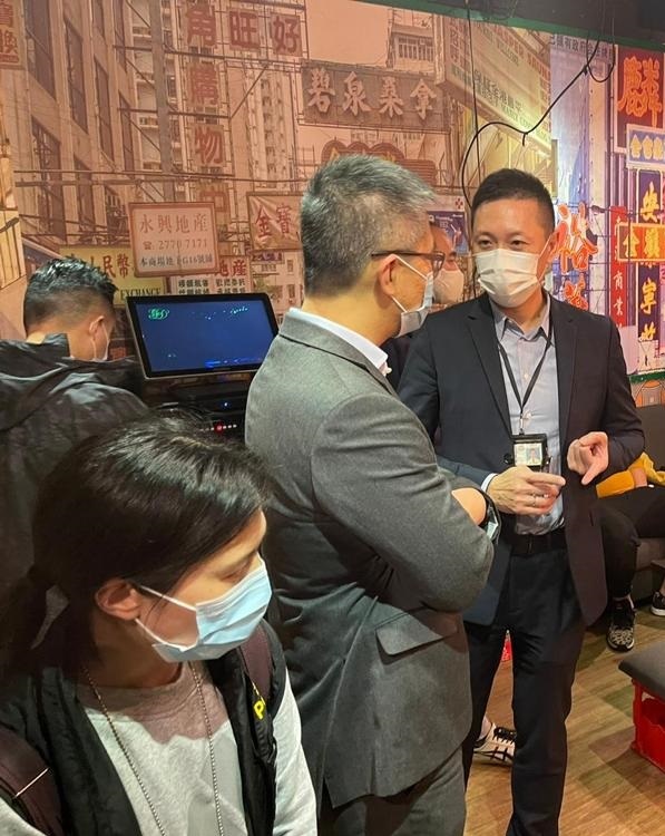 蕭澤頤(灰色西裝)帶隊在油尖區巡查餐飲業處所。