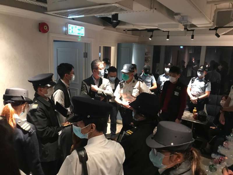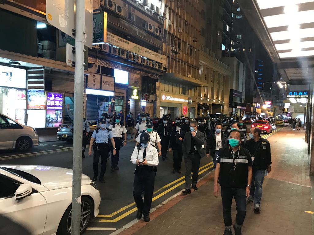警務處副處長(行動)蕭澤頤由昨晚(24日)至今日(25日)淩晨時分,帶領灣仔分區人員,突擊巡查灣仔區內多間酒吧及派對房間,並採取嚴厲執法行動,提醒處所經營者、從業員及市民嚴格遵從防疫規例。