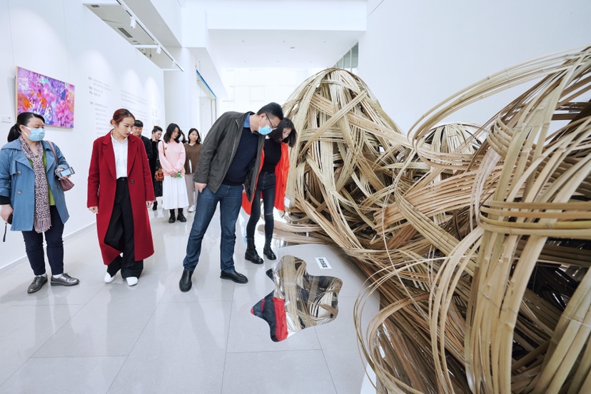 作品《待歸》用竹線的高低起伏去體現山水的自然形態,層疊錯落的竹條似一縷清風拂過山水之間。LYNN告訴記者,待歸,是關注自然待鳥歸來,也是關注自我的一場精神回歸。