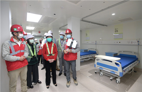 林鄭說:「我感謝中國建築的工程團隊和數千名員工日以繼夜的辛勤工作,為抗疫作出貢獻。臨時醫院將大大提升我們應對疫情的能力,醫院工程引入的新技術對我們日後的工作也極有參考價值。」她又向在場員工致謝,並送上節日祝福,期望在下月再次到訪,見證項目圓滿成功。