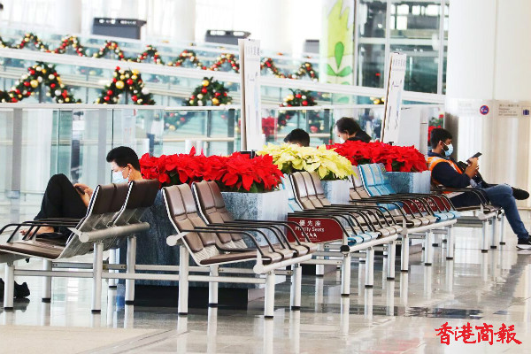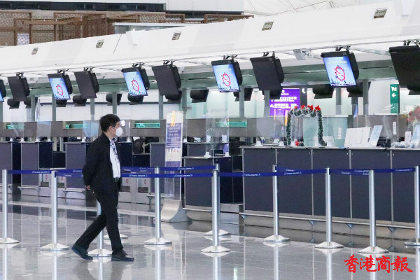 香港是亞太地區航運中心,香港國際機場是其中重要部分,客流、貨流、飛機流的數量都是世界首屈一指。新冠肺炎重創全球航運業,香港亦不能避免,有航空公司裁員甚至倒閉;而香港國際機場人流、飛機流數量都急劇下跌。現時的機場人流疏落,雖然抵港大堂布置了聖誕裝飾,但抵港的旅客寥寥可數,無人欣賞;以往各航空公司辦理登機櫃枱都是大排長龍,現在大部分都關閉;機場內的店舖大部分因人流稀疏而關閉。機場就好像沉睡一樣,等待疫情過去、經濟好轉時才甦醒。(馮瀚文 攝)