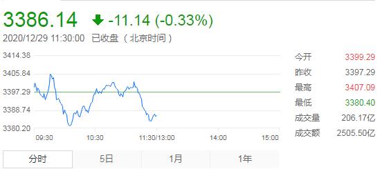 截至午間收盤,滬指跌0.33%,報3386.14點,深成指跌0.34%,報13996.59點,創業板指跌0.77%,報2820.93點。兩市成交額約5700億元;北上資金實際淨流入35.08億元。兩市56股漲停(含ST),27股跌停。