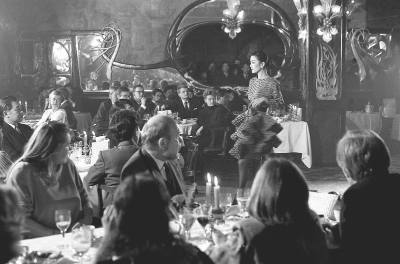 1990年2月14日晚,中國模特在北京馬克西姆餐廳展示法國時裝大師皮爾·卡丹設計的1990年春裝。(新華社)