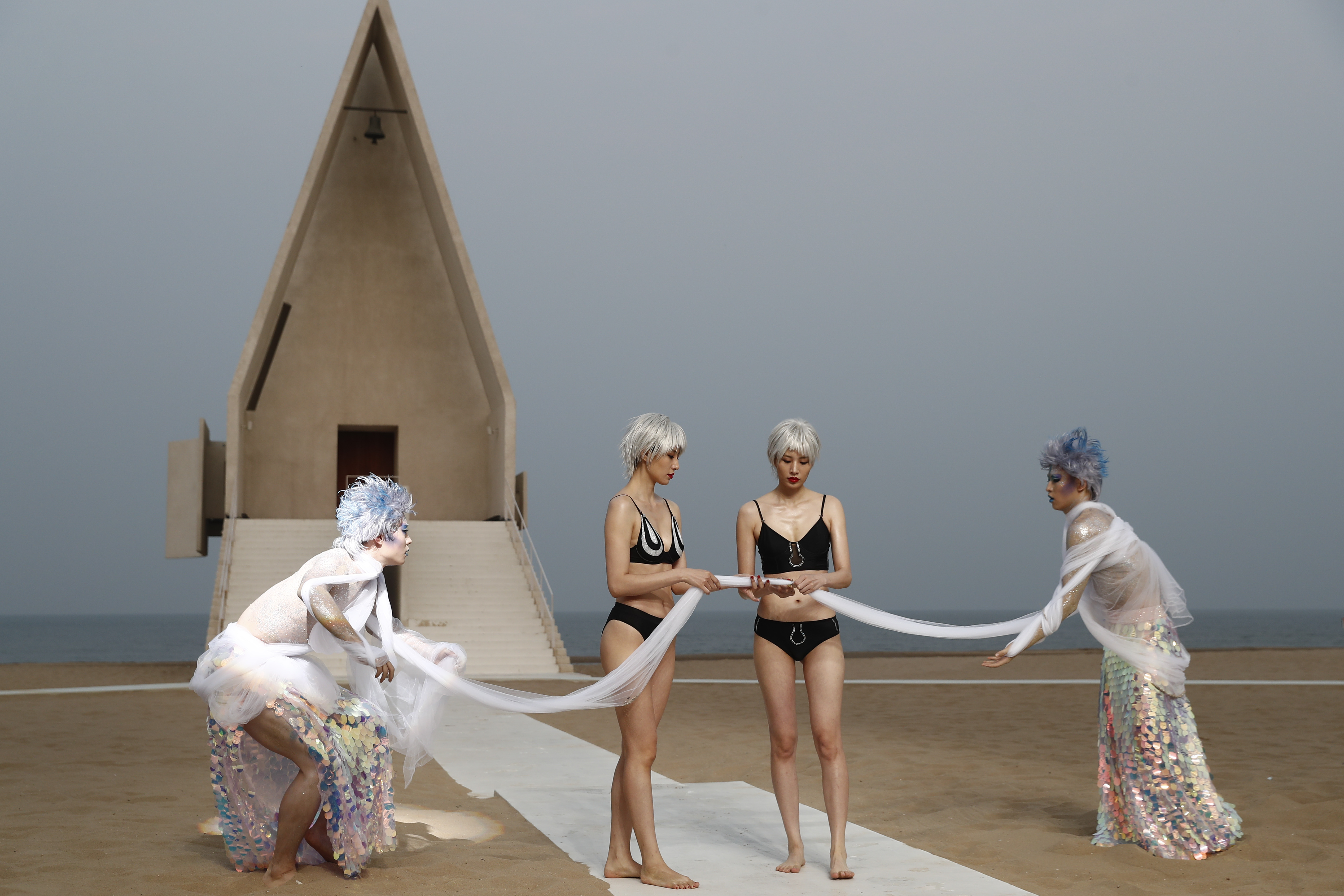 2019年9月5日,皮爾·卡丹2020春夏時裝發布會在河北省秦皇島市北戴河新區阿那亞沙灘舉行。(中新社)