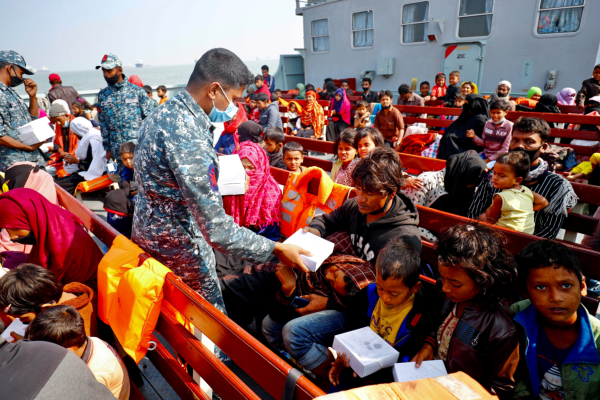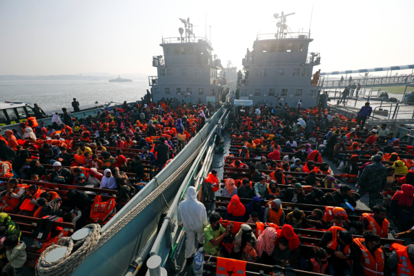 孟加拉周二出動4艘海軍船艦,協助將羅興亞穆斯林自擁擠的難民營遷至從本土搭船要3小時的荒涼小島。這是第2批,同時是最大一群的羅興亞難民,他們將面臨不確定的未來。
