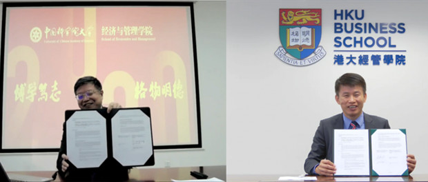 港大經管學院今日(12月30日)與中國科學院大學經濟與管理學院(國科大經管學院)宣布建立合作夥伴關係,為學院的國際領域拓展及金融科技研究邁出重要一步。是次合作結合兩校在金融、機器學習及工程系統研究方面的專長,打造開創先河的金融科技研究交流平台,支持聯合研究及參與資助申請,進一步鼓勵教學與研究經驗豐富的學者更緊密交流。