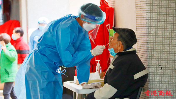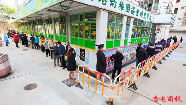 彩雲邨是本港第四波新冠肺炎疫情重災區之一,繼豐澤樓後,啟輝樓、紫霄樓、繡文樓被定為強制檢測大廈,居民須接受新型冠狀病毒核酸檢測。其中啟輝樓的污水樣本檢測持續呈陽性,顯示或有確診患者身處相關地方。政府在繡文樓地下設立臨時採樣站為居民及工作人員提供免費檢測服務,不少市民輪候。(記者馮瀚文攝)