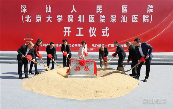 12月30日,深圳市深汕特別合作區(簡稱「深汕合作區」)舉行深汕人民醫院(北京大學深圳醫院深汕醫院)項目開工儀式。深圳市副市長吳以環為重要民生項目宣布開工。該項目將建設成為深圳第「10+1」區首個三級綜合醫院,實現深汕合作區高規格、高水平、高質量醫院「零」的突破,切實滿足深汕人民群眾對優質醫療衛生服務的需求。