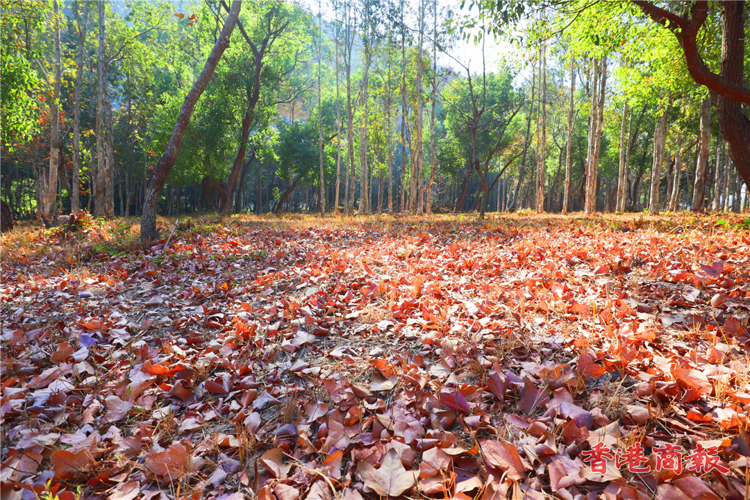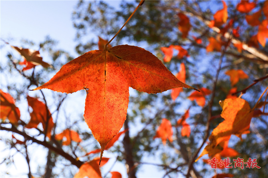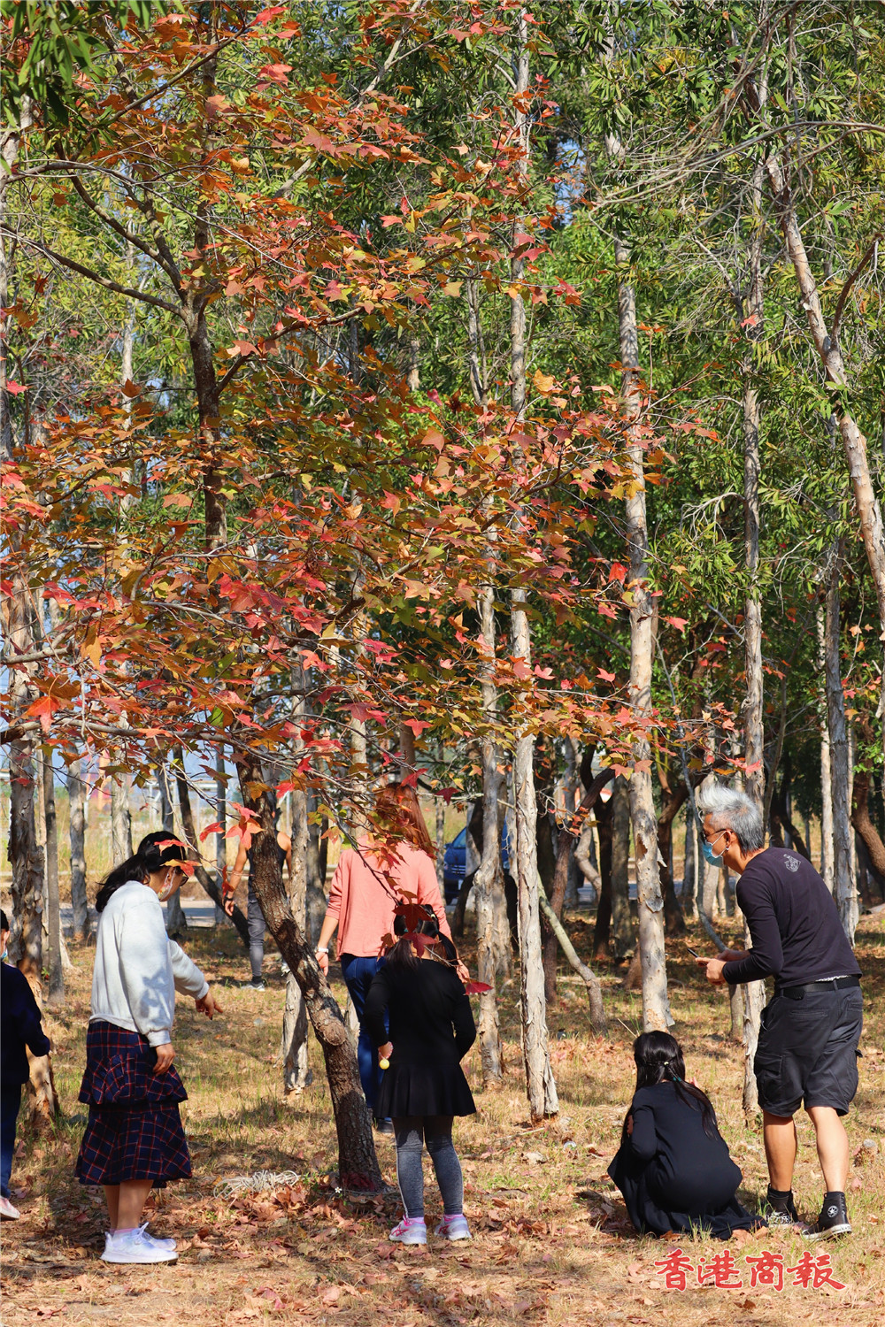 因為交通不太方便,而且這裏的楓香樹比較分散,前來採「楓」的人比較少,在此就可以慢慢細賞紅葉和拍照。時值隆冬樹葉脫落,草地上盡是紅、黃色的枯葉,形成令一番美景。(馮瀚文攝)