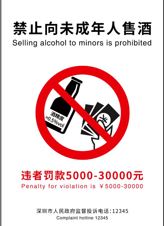 1、禁止向未成年人銷售酒精飲料標識
