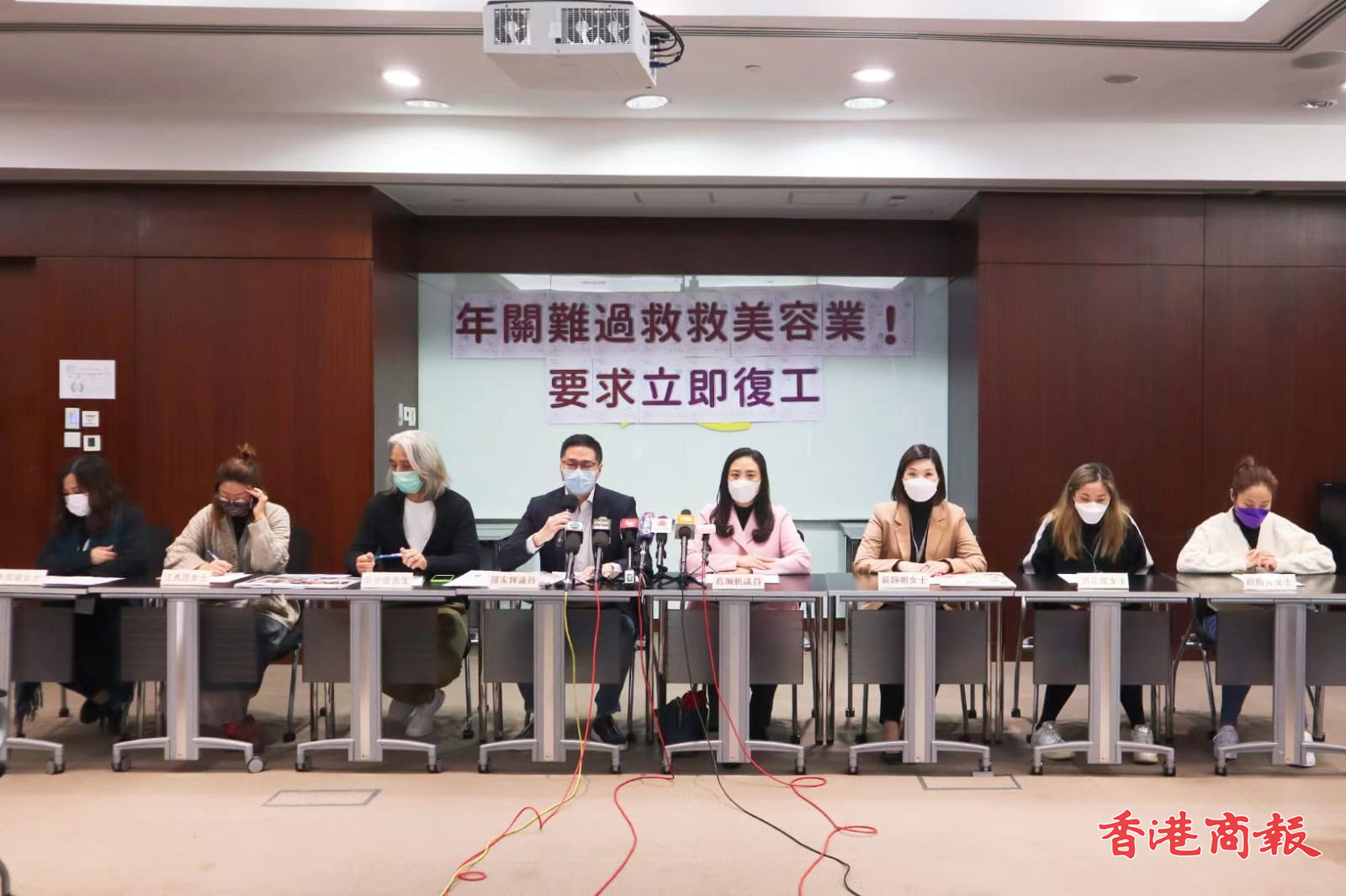 全港美容業界代表今日聯同立法會批發及零售界議員邵家輝及民建聯議員葛珮帆召開記者會,要求政府批准業界可立即復工。