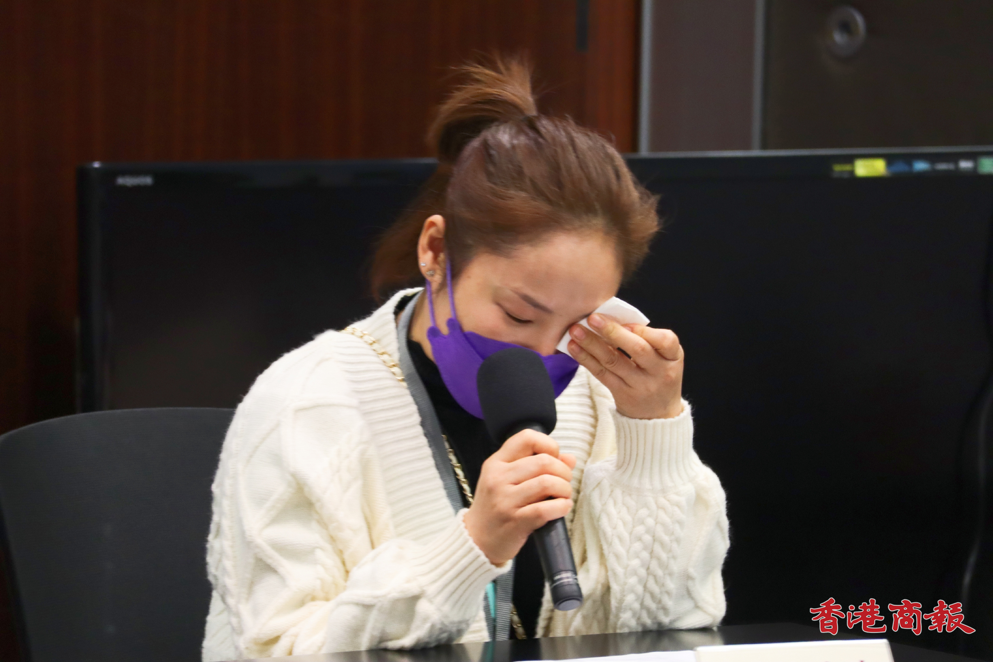 美容業員工代表哭訴苦況(馮瀚文攝)
