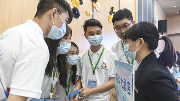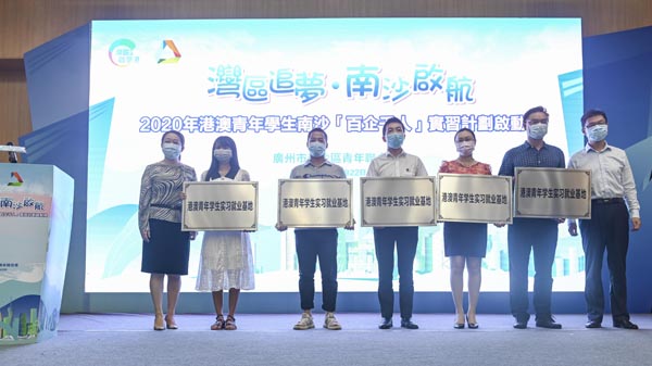 施政報告多項政策支持青年到粵港澳大灣區發展。圖為2020年港澳青年學生南沙「百企千人」實習計劃在廣州啟動。資料圖片