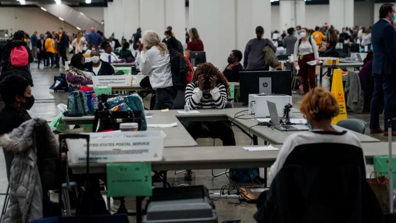 高級選舉官員呼籲民眾不要理會特朗普的誤導訊息,並要在周二參議院議席選舉中投票。最新民調顯示,佐治亞州參院議席選舉,兩個民主黨候選人支持度,分別較共和黨人高出1.8%至2.1%,一旦民主黨人全奪兩席,參院會呈現「50對50」局面,副總統賀錦麗就可投下致勝一票,等同令民主黨控制國會兩院和白宮。