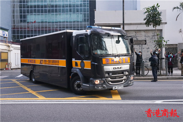 黎智英坐囚車離開法院 记者馮瀚文攝