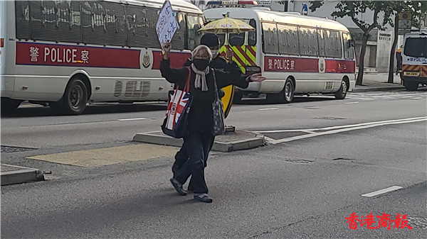 有支持者到現場聲援,走出馬路,要警察攙扶回到人行道。记者木子摄