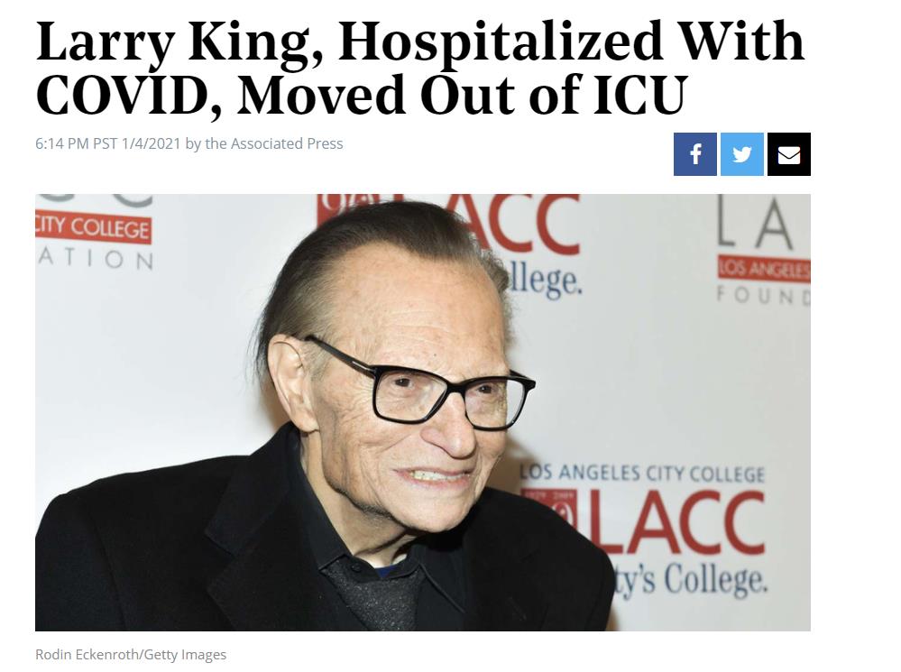 關於拉里·金確診新冠的消息2日首次被曝出,當時一位與拉里·金家族關係親近的消息人士表示:「在過去的幾年里,拉里一直在同諸多健康問題作鬥爭,這次他也在努力抗爭,他是勝利者。」