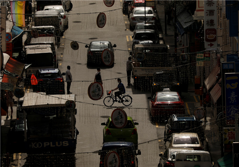 新加坡唐人街,一人騎單車经過。