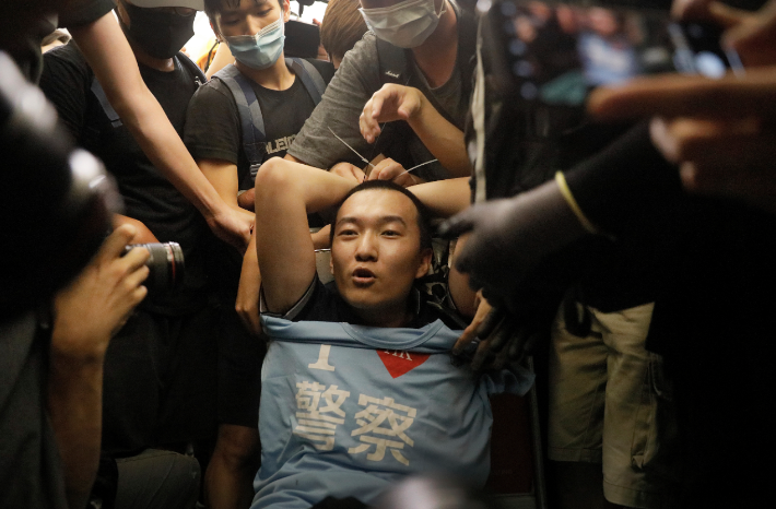 環球時報環球網記者付國豪遭到暴力「示威者」不斷毆打。(資料圖片)