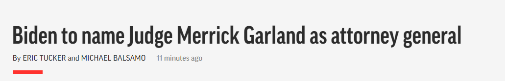 據多家美媒消息,美國總統當選人拜登政權交接團隊當地時間6日表示,拜登打算提名聯邦上訴法院法官賈蘭德(Merrick Garland)為下任司法部長。