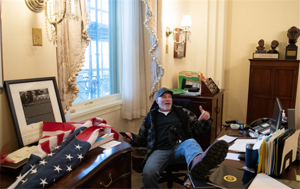 據VC STAR報道,大批特朗普支持者當地時間周三晚沖進美國國會大廈,導致國會辯論進程中止,人員被迫緊急撤離。示威者還沖進眾議院議長佩洛西辦公室大搞破壞,並坐在她椅子上擺拍。