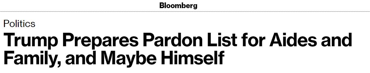 據報道,在選舉日之後的幾次談話中,特朗普表示他正在考慮赦免自己;他向顧問們詢問是否應該赦免自己,以及這在法律上和政治上會產生什麼影響。