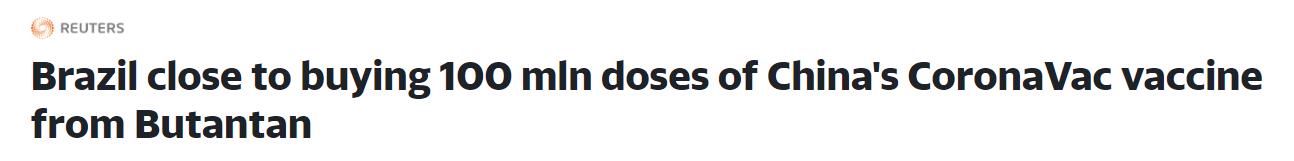 據路透社消息,巴西衛生部長當地時間周四表示,巴西政府正接近與Butantan研究所達成一項至多1億劑科興生物疫苗的協議。