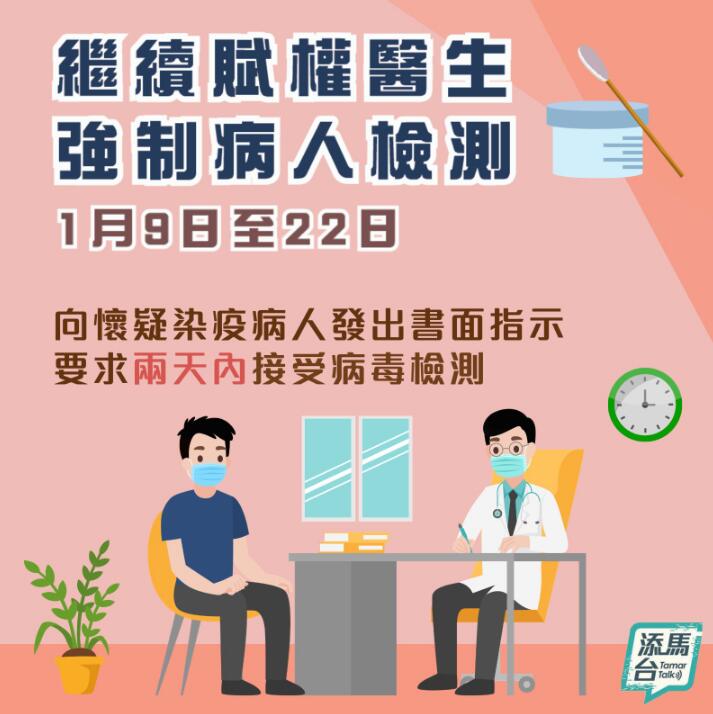 本港新冠疫情依然嚴峻,為盡早截斷病毒傳播鏈,港府刊憲繼續賦權醫生由今日(9日)至本月22日,如臨床判斷懷疑任何人感染新冠病毒,可向其發出書面指示,要求該人在2天內接受病毒檢測。