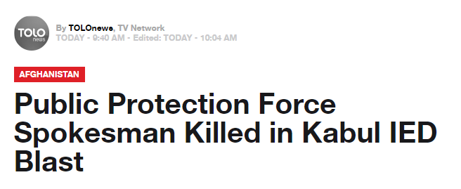 報道稱,3名死者分別為阿公共保護部隊發言人齊亞·瓦丹(Zia Wadan)以及他的2位同事,當時瓦丹正在去上班的路上。